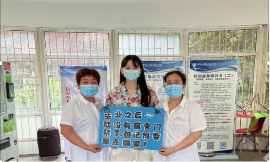 活动在扬帆广场与思源路设置两个特色打卡点,一是2022届毕业生合影墙;二是毕业主题立牌和拍照框,共同记录与青春的合影,回忆与老师、同学们的校园故事。此外,在学校宿舍、食堂、快递站等工作人员也将最诚挚的祝福送给毕业生们。