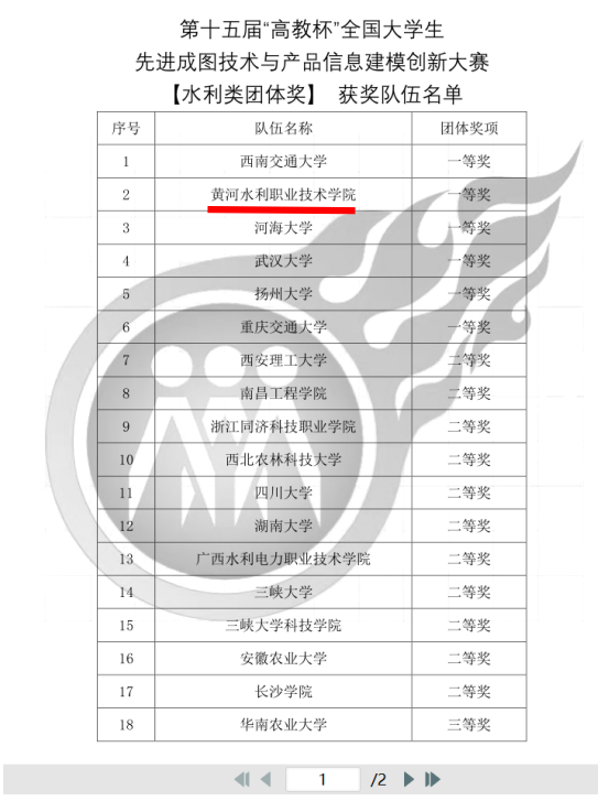 7月29日-8月2日,第十五届“高教杯”全国大学生先进成图技术与产品信息建模创新大赛在江苏大学成功举办。我校水利工程学院、土木与交通工程学院、机械工程学院共派出4支代表队参加了水利类、道桥类、建筑类、机械类四个类别的项目比赛。经过激烈角逐,我校学子荣获水利类团体一等奖、道桥类团体一等奖、建筑类团体一等奖、机械类团体三等奖。参赛选手共获得个人全能一等奖23项、二等奖22项、三等奖14项。我校第13次荣获水利类团体一等奖,也是唯一一所获此殊荣的高职院校。